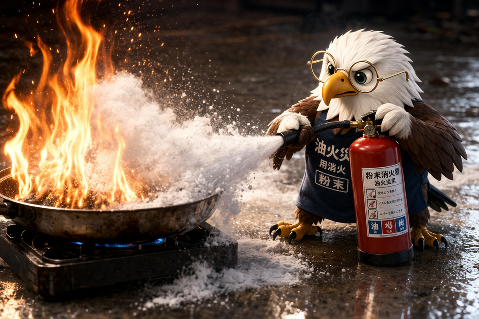 粉末が燃焼反応を妨げたり酸素を遮ったりして、幅広い火に効くんだ。
