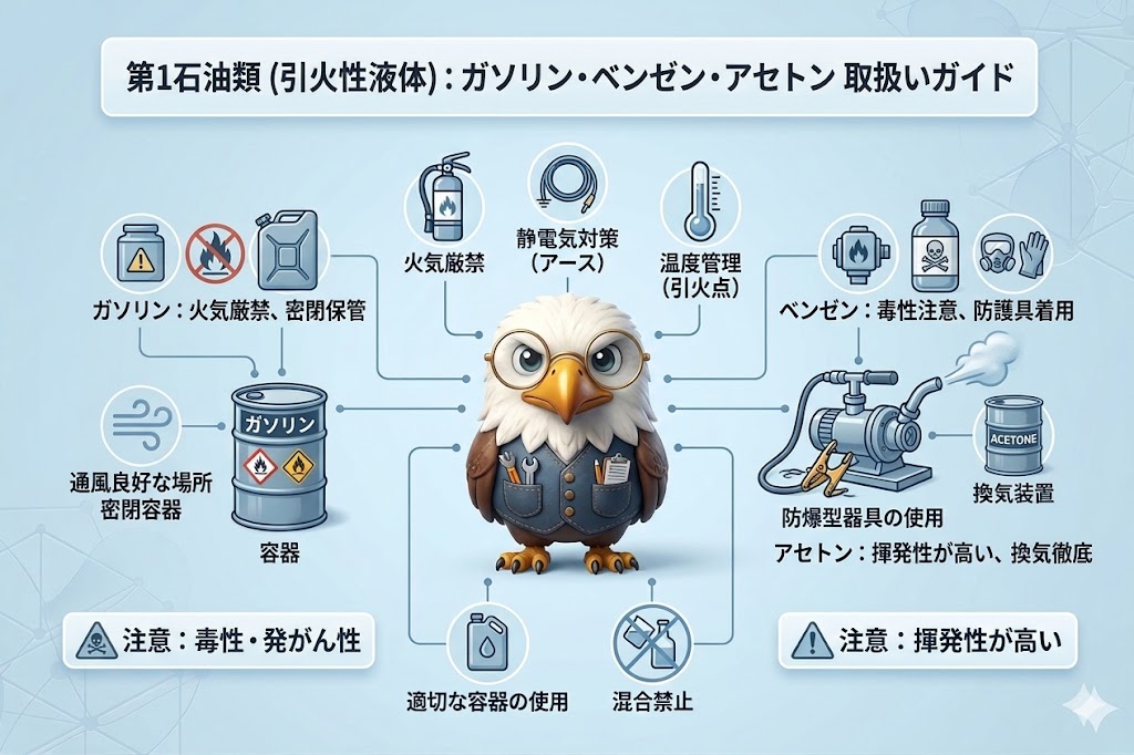 - 🛢️ 具体例:ガソリン、ベンゼン、アセトン、ピリジン など。